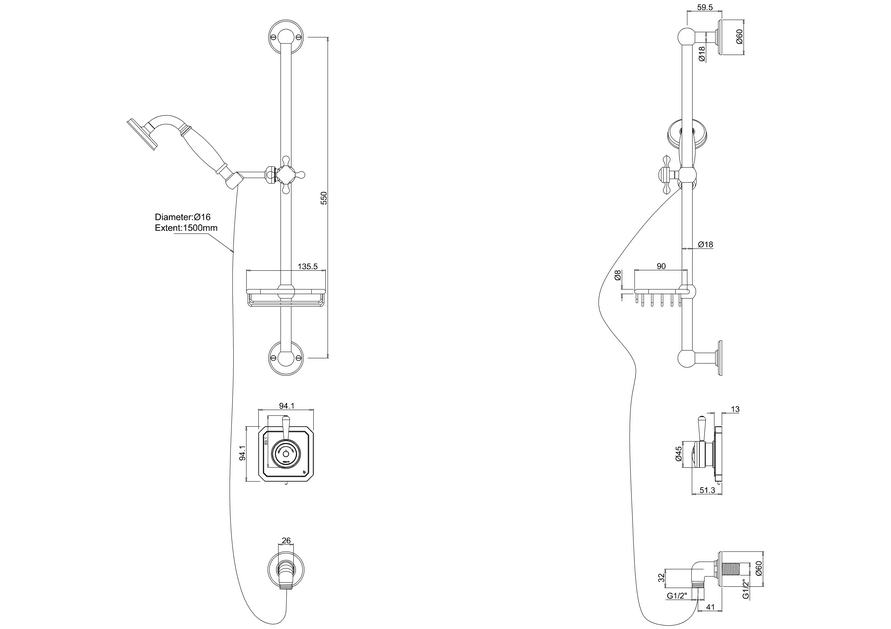 | V26 | burlington Shower hose 1500mm |